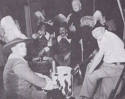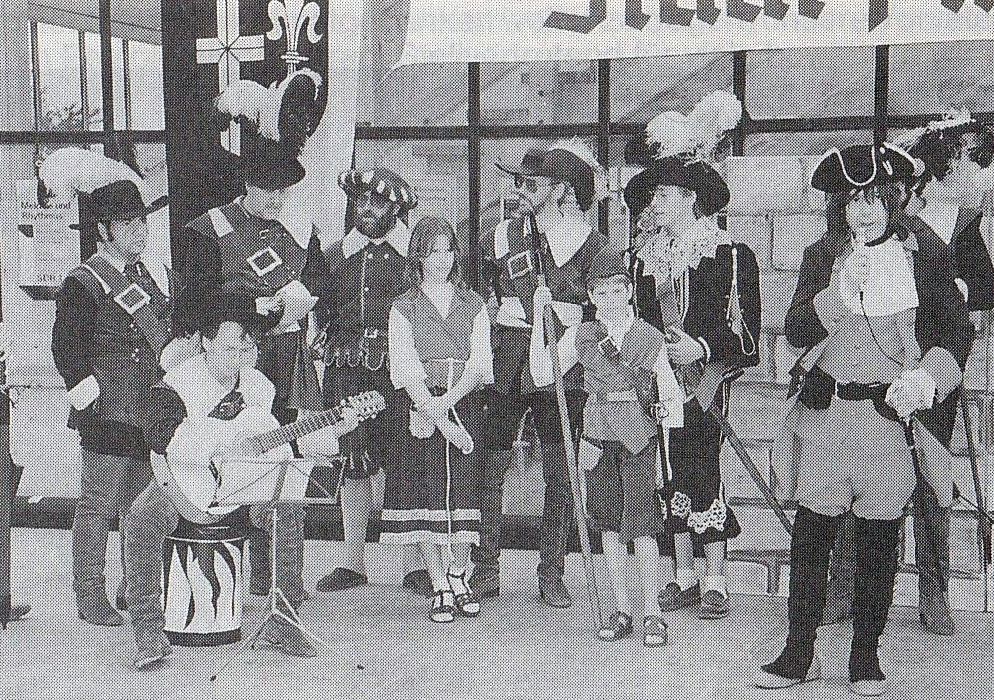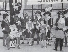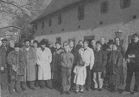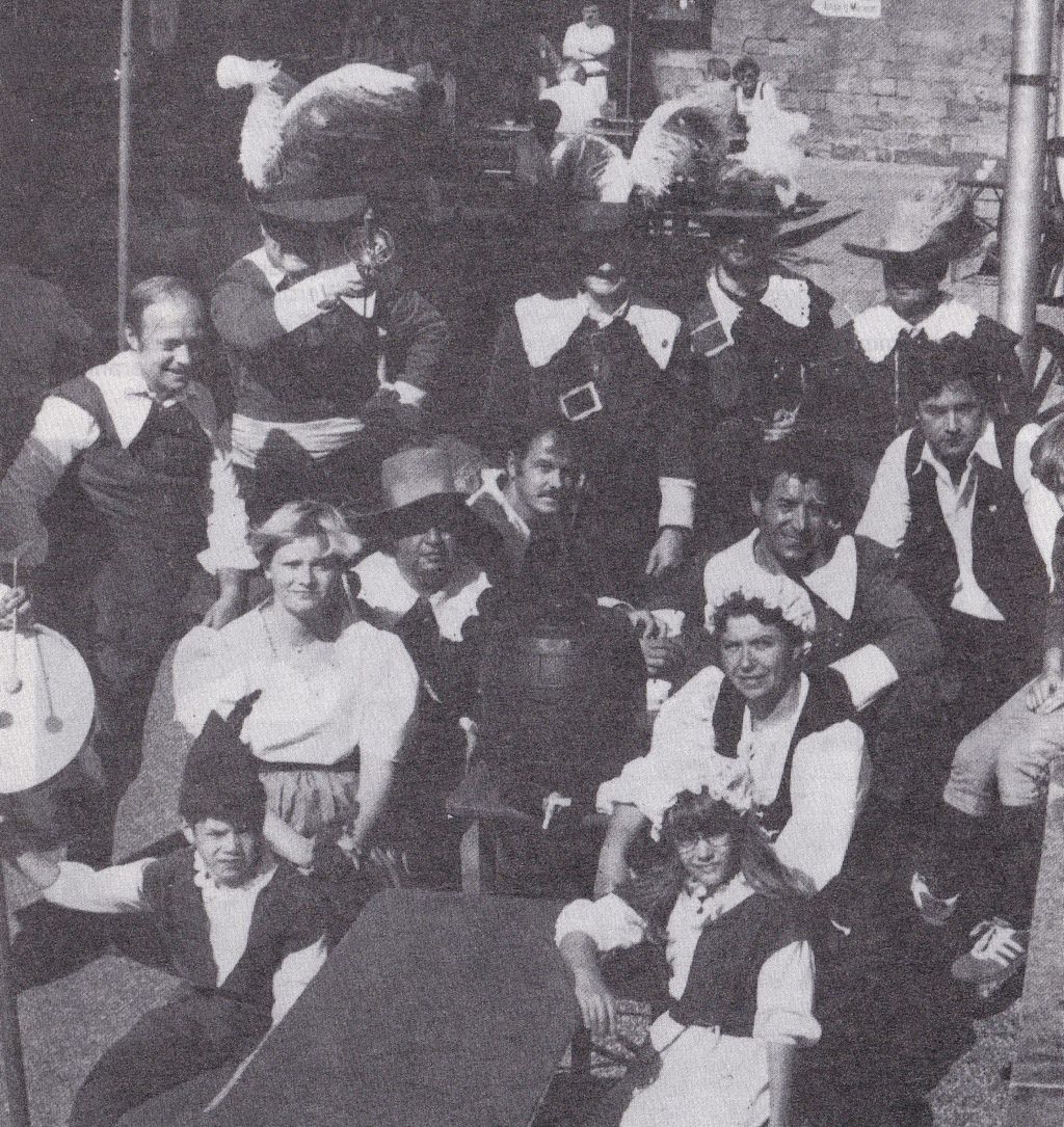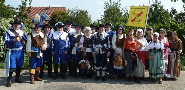 Im Hintergrund eine historische Gruppe aus dem Theaterst ck Der letzte Kommandant , aufgef hrt 1999, von Uli Pfitzenmeier, Theatergruppe Alt-Udenheim |