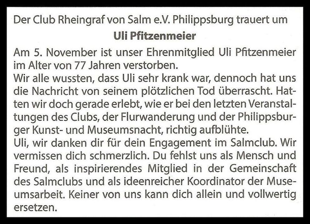 Die Geschichte seiner Heimatstadt Philippsburg lag Uli Pfitzenmeier stets am Herzen. Besonders