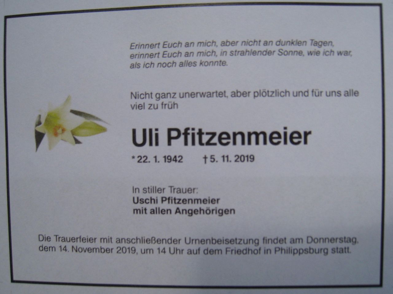 Lieber hätte ich ihm dies alles noch persönlich gesagt, als es nun in einem Nachruf