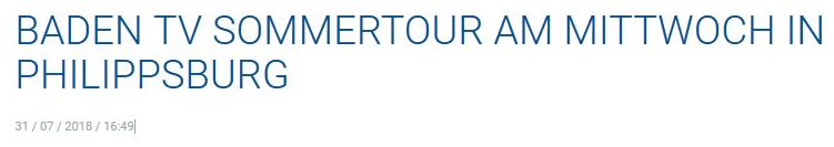 Philippsburg (ij) Die Baden TV Sommertour zieht weiter. Morgen am Mittwoch den 1. August