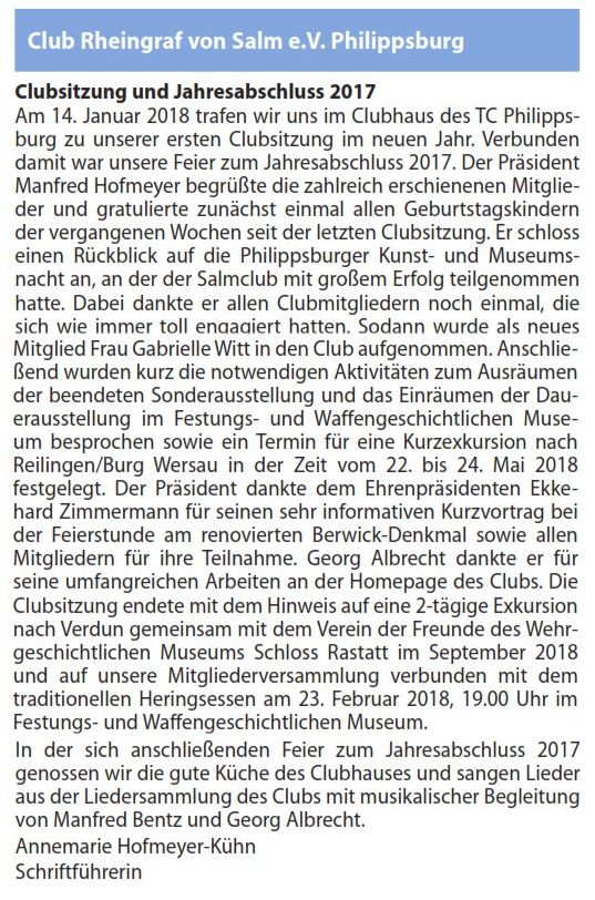 Clubsitzung am 14. Januar 2018![]() Jahresabschluss im Clubhaus des TCP Foto: Klara Albrecht