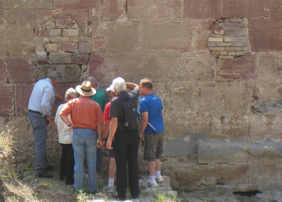 Künstlerin Christa Scheuer, der historische Fechter Roland Hely, Uli Pfitzenmeier vom historischen Verein