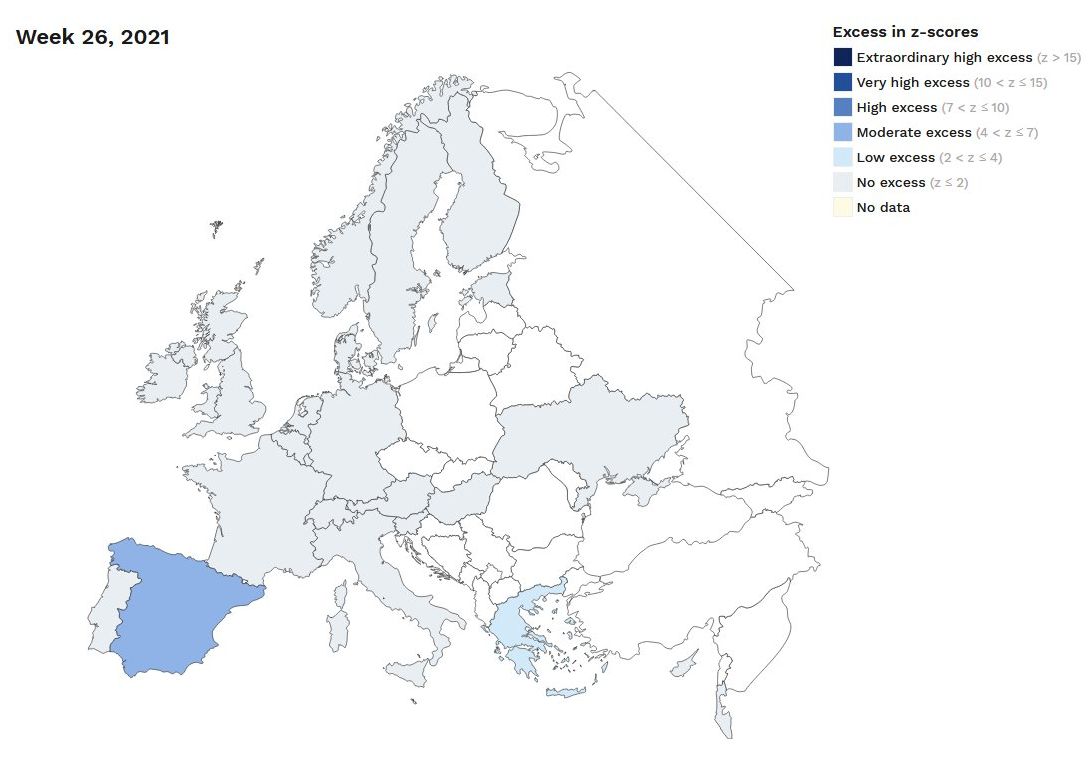 Offizielle nationale Sterblichkeitsstatistiken werden wöchentlich aus den 27 europäischen