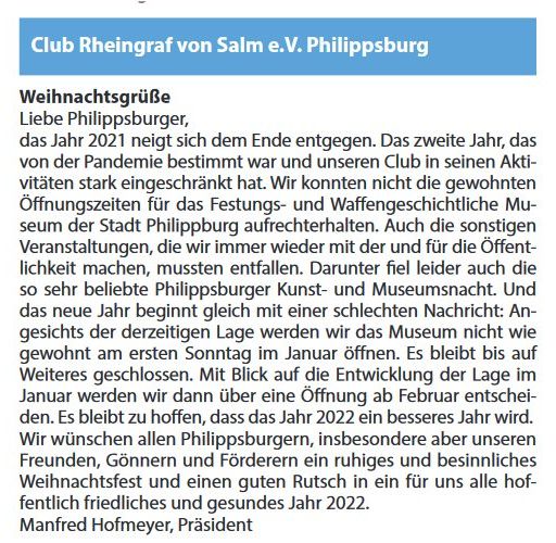 Veranstaltungen 2021![]() ![]() Weihnachtsgrüße