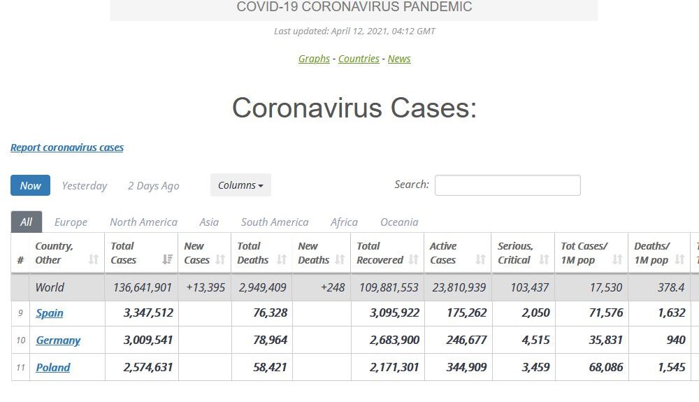 Für aktuelle Daten klicken Sie bitte hier: www.worldometers.info/coronavirus/