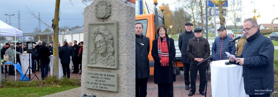 Berwick-Denkmal in PhilippsburgAm Samstag, den 18. November 2017, fand die offizielle Einweihung des Berwick-Denkmals nach Renovierung am Denkmal statt. ![]() Foto: Geza Milvich Das Berwick-Denkmal befindet sich im Nordosten der Stadt Philippsburg an der Landesstraße 555. Gestaltung: Dr. med. Rudolf Beranek James Fitzjames, 1. Duke of Berwick, 1. Duque de Berwick, 1. Duque de Liria y Jerica, 1.