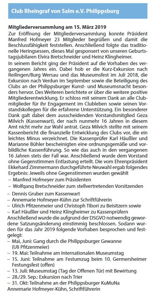| Kassenprüfer | | Karl Häußler und Inge Klingheimer